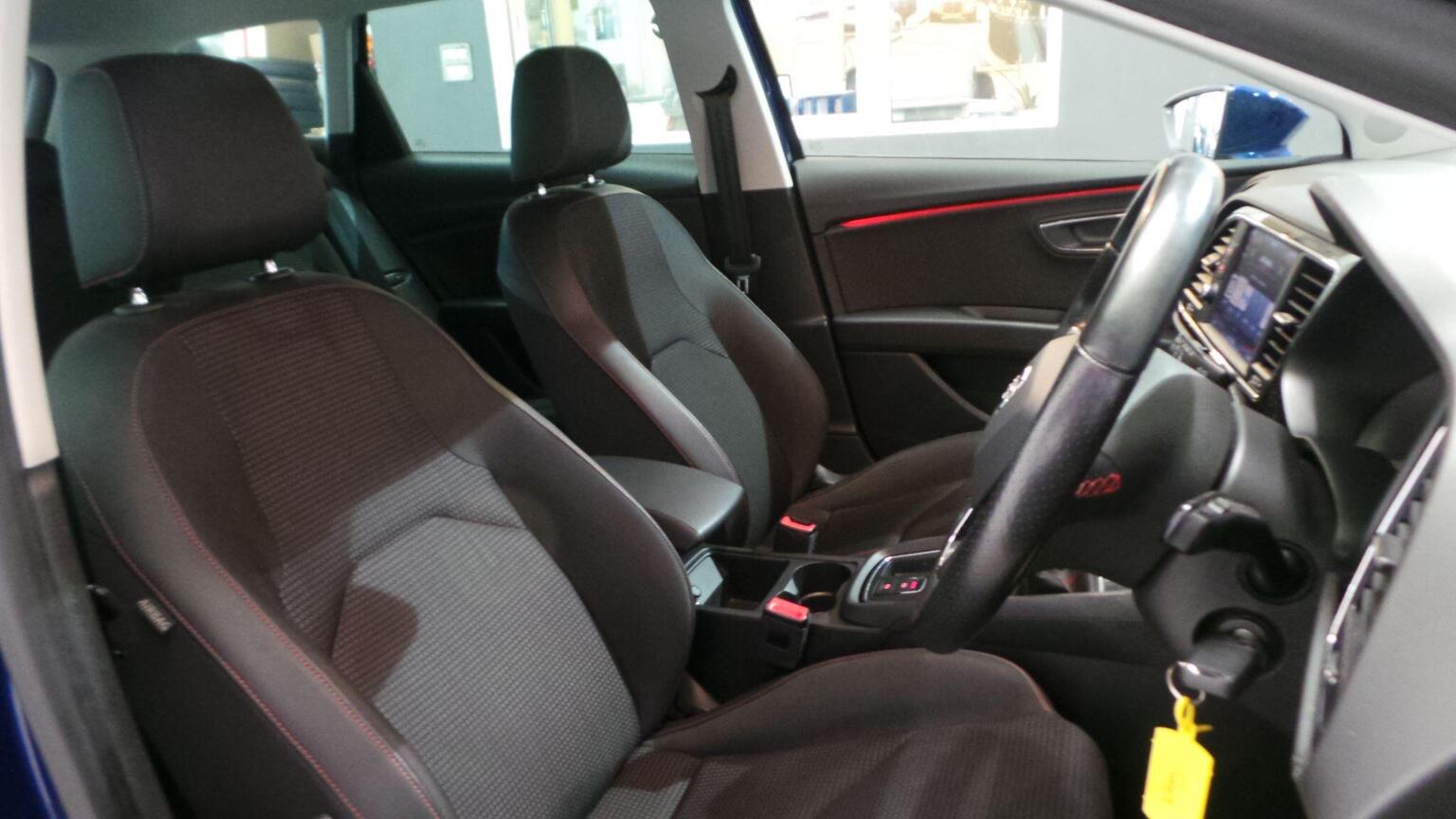 12V Power Supply in Centre Console, 17in Alloy Wheels - Dynamic, 3.5in Drivers Display, 7 Airbags, ABS - Anti-Lock Braking System - TCS - Traction Control System, Active Front Head Restraints and 3 Rear Head Restraints, Alarm - Perimeter and Interior Monitoring with Back-up Horn and Tow-Away Protection, Aluminium Front Door Sill Trims with FR Logo, Body-Coloured Door Handles, Body-Coloured Door Mirrors with Integrated LED Indicators, Bumpers - Exclusive FR Front and Rear, Chrome Loading Sill, Cruise Control, Dark Tinted Rear Windows, Driver and Passenger Seat Height Adjustment, Driver and Passenger Sunvisor with Covered and Illuminated Mirrors, Drivers Seat Lumbar Adjustment, Dual Zone Climate Control, ESC - Electronic Stability Control and Tyre Pressure Warning Light Indicator, Electric Parking Brake Including Autohold Function, Electrically Folding Door Mirrors, Electro-Mechanical Power Steering, Electronic Differential Lock System - XDS, Emergency Tyre Repair Kit, Exhaust Pipe - Twin, Front Assist with Pedestrian Protection, Front Seat Back Storage Pockets, Front Sports Seats, Front and Rear Electric Windows, Fuel Filler Flap linked to Central Locking, Full LED Headlights, Full Link, Gearshift Indicator, Head Restraints - Height Adjustable Front, High Centre Console, High Gloss Black B and C Pillars, Hill Hold Control, ISOFIX Points in Outer Rear Seats with Top Tether Anchorage Points, Illuminated Glovebox, Instrument Lighting with Brightness Control, Interior Chrome Detailing, Lights Left On Warning Buzzer, Low Fuel Warning Light, Lower Suspension - 15mm, Luggage Compartment Cover, Media System Plus, Multi Coloured Ambient Lighting, Multi-Collision Braking System, Navigation System, Outside Temperature Gauge, RPM Counter, Radiator Grille Frame in Chrome, Radiator Grille in Black, Reading Lights Front and Rear with Ambient Spots - Boot Lights and Illuminated Foot Area, Remote Central Locking with Deadlocks, SEAT Drive Profile, Seatbelt Reminder - Front, Seats - Passenger Lumbar Adjustment, Split Folding Rear Seats - 60-40, Sports Suspension, Steering Wheel - Flat-Bottomed Perforated Leather with Red Stitching and FR Logo, Storage Box Under Driver and Front Passenger Seat, Trip Computer, Two Remote Keys with Window Open-Close - Door Mirror Folding and Boot Opening Functionality, Two Side Nets - Left and Right